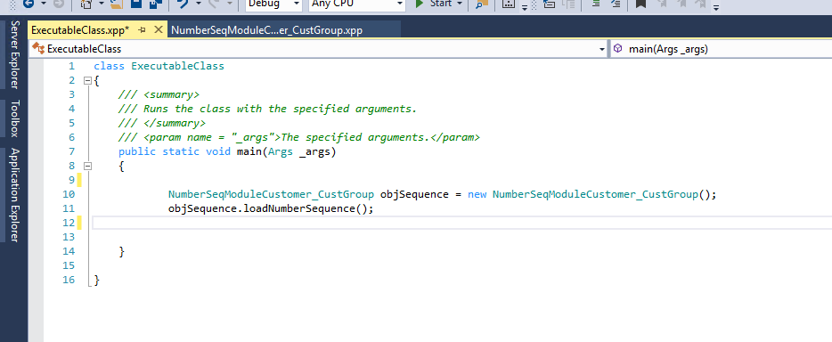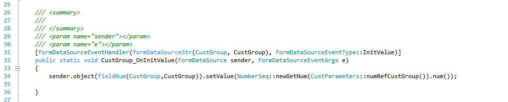 ============== Number Sequence D365FO Number sequences are used to generate readable, unique identifiers for master data records and transaction records that require identifiers. In this demo, I am going to create a new number sequence for customer group form. Create a new class with name NumberSeqModuleCustomer_CustGroup that extends the NumberSeqModuleCustomerclass and then create the method loadNumberSequence. Reference Screenshot: Now create extension class of CustParameters_Extension and add your custom method to find number sequence.. Reference Screenshot: Now create Run able class to initialize the number sequence... Reference Screenshot: Perform build & Sync and load the number sequence. In my demo i have place Action menu item of executable class on following navigation. Reference Screenshot: Now Navigate to organization administration > Number sequence and generate number sequence. Reference Screenshot: Next Step to Navigate to Account receivable parameter setup to veriy our newly create number sequence loaded successfully or not... You have to verify on your desire number sequence module. Next step to override CustGroup form data source Initial value event. Reference Screenshot: Perform build & Sync and verify on your cust group.. for me its working fine please have look on below screenshot. Please feel free to contact me if you are facing any issue during implementation of above blog. Источник: http://d365technext.blogspot.com/201...ce-d365fo.html