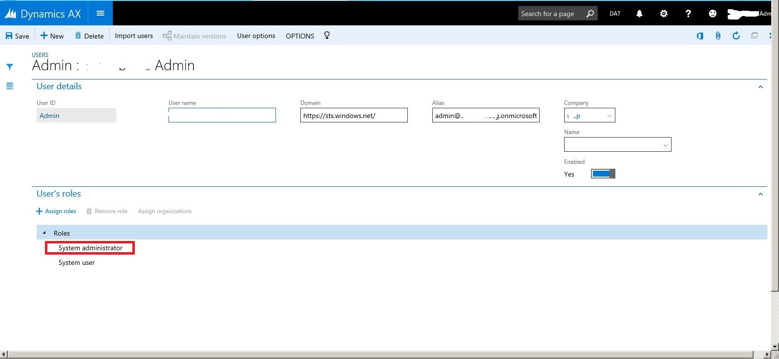 ============== [COLOR=rgba(0, 0, 0, 0.701961)]Hello All,[/COLOR] [COLOR=rgba(0, 0, 0, 0.701961)]Recently we faced an issue while implementing AX 7 for one of our customer. The issue was with the menu Items displayed on the left hand side of the browser. We simply couldn't see the menu even though we logged in using the System administrator account. All it displayed was few menu's hiding the rest. Please refer to the image below for more clarity.[/COLOR] [COLOR=rgba(0, 0, 0, 0.701961)]Logged in using the system administrator account[/COLOR] [COLOR=rgba(0, 0, 0, 0.701961)]After doing lot of re-search we figured out that the issue is caused because Commerce essentials configuration in the license configuration for AX 7 was enabled due to this the system will only enable basic functionalities related to Retail and hence the menu was not being displayed.[/COLOR] [COLOR=rgba(0, 0, 0, 0.701961)]Then the next issue was that we were not able to navigate to Licence configuration page to disable the Commerce essentials configuration since the menu was not displayed. The workaround to access the page is to add the following piece of string highlighted in bold after the main url.[/COLOR] [COLOR=rgba(0, 0, 0, 0.701961)]https://devaos.cloudax.dynamics.com/?cmp=DAT&mi=SysConfiguration[/COLOR] [COLOR=rgba(0, 0, 0, 0.701961)]This will take you to License configuration page and then in the license configuration page disable the Commerce essentials key, logout and Log in again. Now everything should be fine. You will again see the menus in AX :)[/COLOR] [COLOR=rgba(0, 0, 0, 0.701961)] [/COLOR] [COLOR=rgba(0, 0, 0, 0.701961)]Happy Daxing :).Watch out for my next post [/COLOR] Источник: http://dax-ideas.blogspot.com/2016/0...dmin-user.html