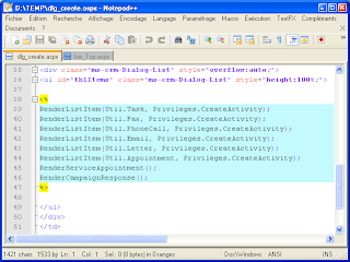 ============== Hi, I love the CRM forums because lot of people are asking very interesting question... The last I liked was: how to remove some activities when I click on "New" button in the activities grid or when I click to the top menu "New activity". Indeed, if you don't want to use the campaign response activity, or any other of them, you can't hide them in a native and supported way. So, I give you some hints to hide these activities. Please be aware that these methods are unsupported! Make a backup of each mentionned file before follwoing this procedure. Removing an activity in the "New" activity dialog in activities grid To remove the activity you want, open the file \Activities\dlg_create.aspx. Search for the block in blue in the screenshot below. You can comment or delete the lines that correspond to the activities you need to hide. Then save the file. Removing an activity from the "New activity" top menu For this one, open the file \_root\bar_top.aspx. Search for the function "CheckAddin()". This method is called during page loading. Add the line (see screenshot below) corresponding to the activity you need to hide. The all list of activities id is: