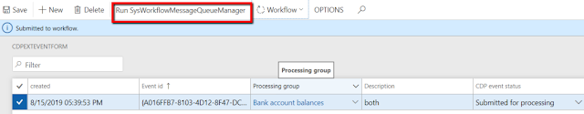 ============== Correct me if I am wrong, but there is no specific article https://docs.microsoft.com about debugging custom Workflow in D365. So, once I bumped into necessity to test my custom Workflow classes, I found myself unlucky not having admin rights fot Batch.exe (as described here https://ax.docentric.com/debug-workf...nd-operations/) Next search results (in particular this one https://thwidmer.wordpress.com/categ...x-2012/page/2/) brought me to the following steps. I stopped DynamicsAxBatch, which execute actual batch processing in D365. I added the following simple class and and a menu item button to a form. class CDPWFDebuggerActive { static public void main(Args _args) { SysWorkflowMessageQueueManager::runStatic(conNull()); } } Now I run it by the button to execute batch processing in step-by-step mode, and it perfectly hits my breakpoints inside of Workflow handlers once I attached to the standard IIS process. Источник: http://alexvoy.blogspot.com/2019/08/...5-without.html